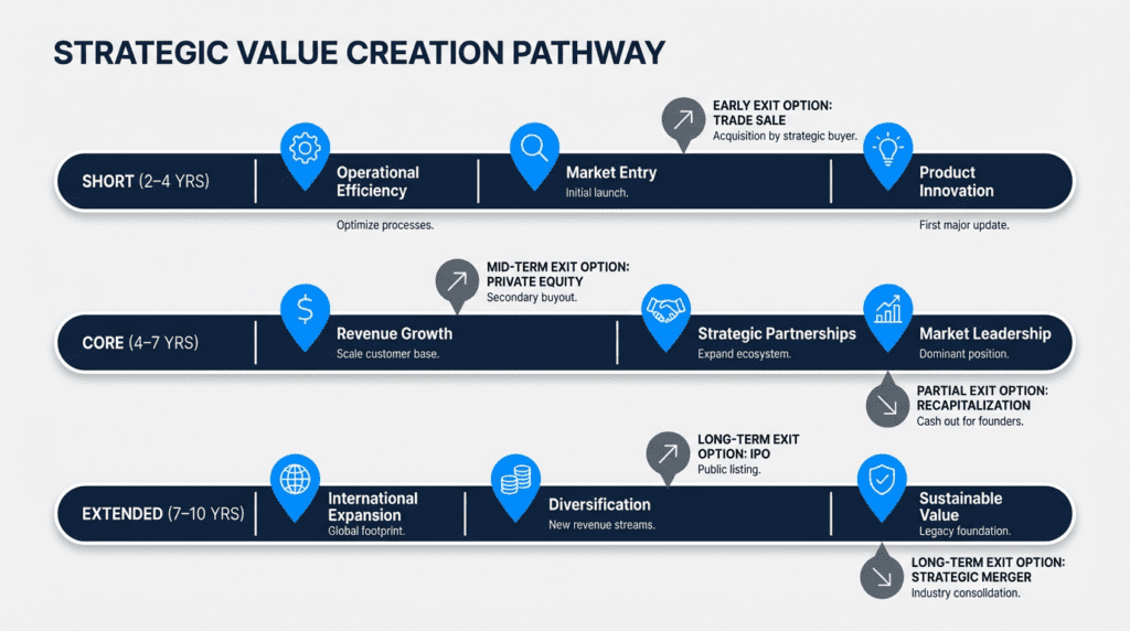 Companies that focus on operational improvements while maintaining exit readiness can influence their timeline and maximize returns. The next consideration is how different exit strategies shape these holding period decisions.